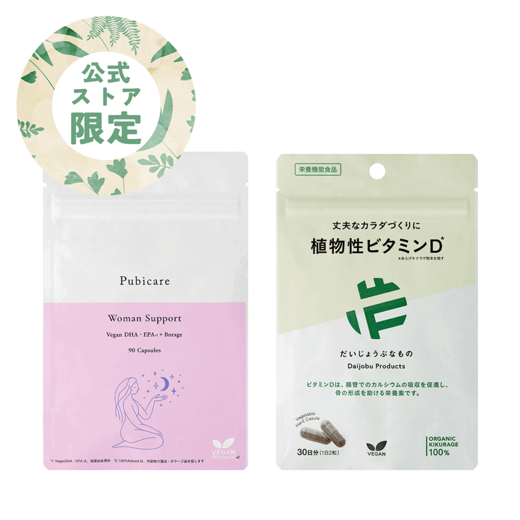 内側から若々しく!藻由来=ヴィーガンのDHA・EPAと植物性の栄養機能食品ビタミンDをダブルで摂って、エイジングケアをサポート。
